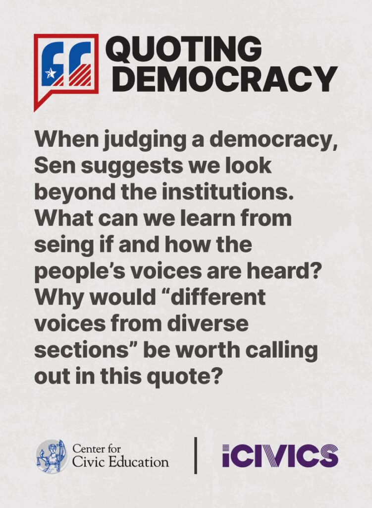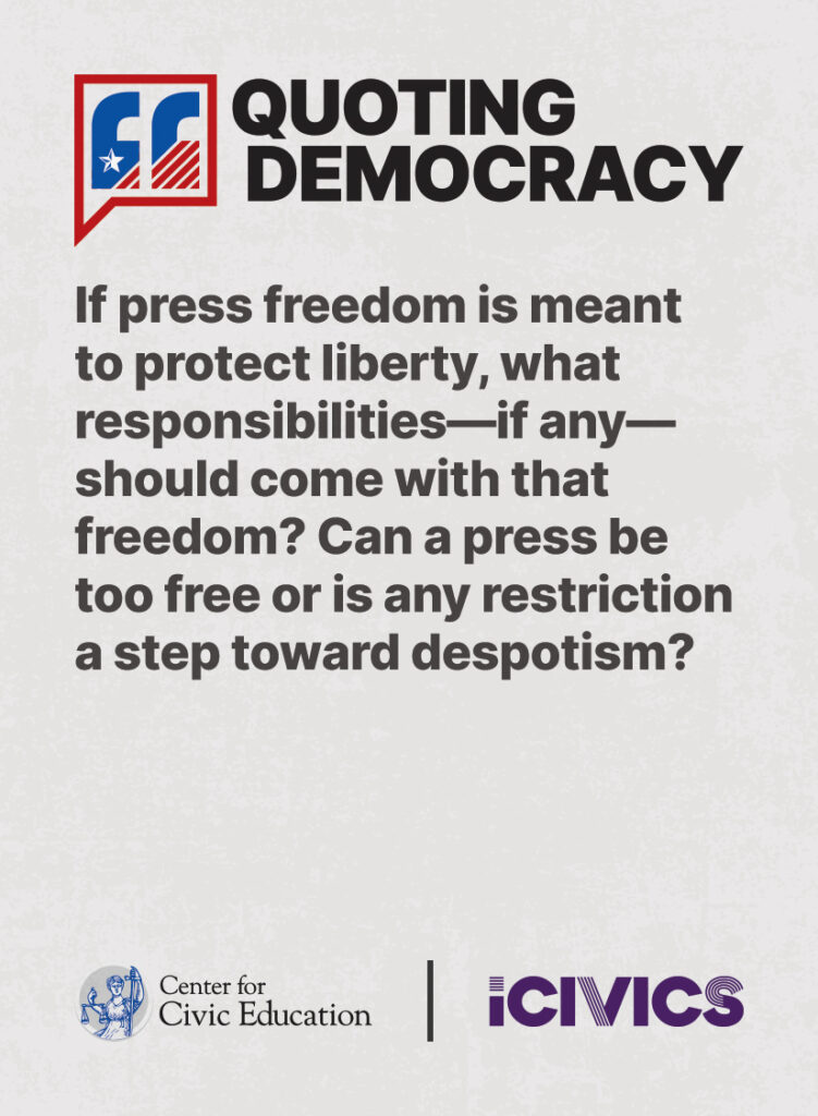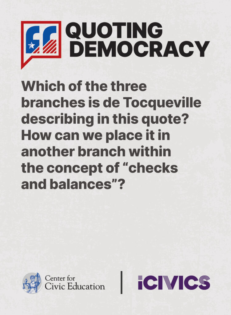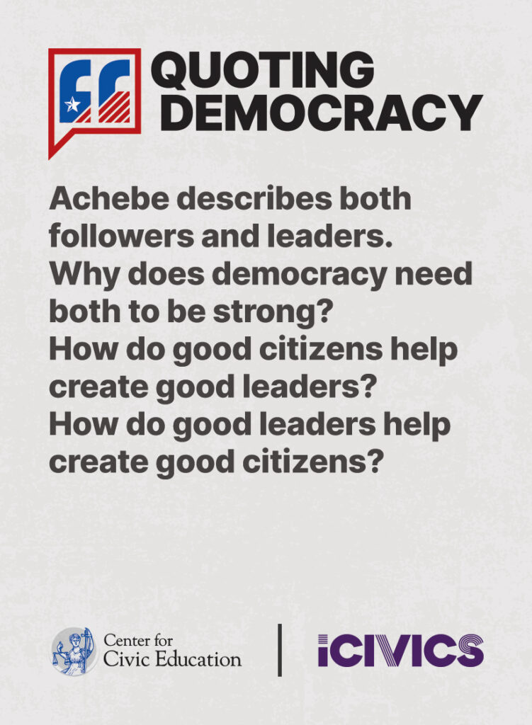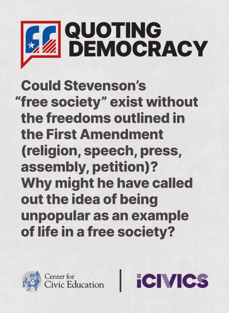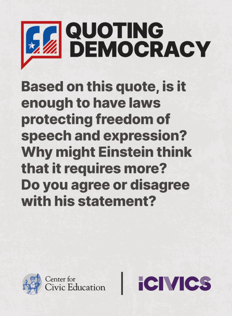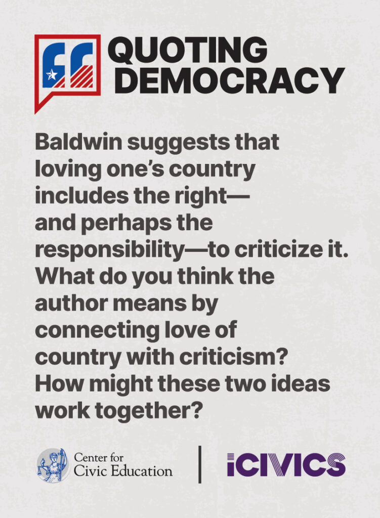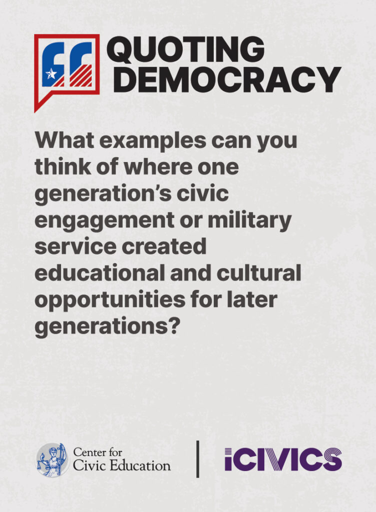Engage students in civic values and sharpen their critical thinking skills. Quoting Democracy, created by iCivics and the Center for Civic Education, introduces students to quotes from iconic figures in American civics and prompts them to think deeply about the nation’s history and principles. Use the deck to boost your lesson plan or as a ready-to-use bellringer.