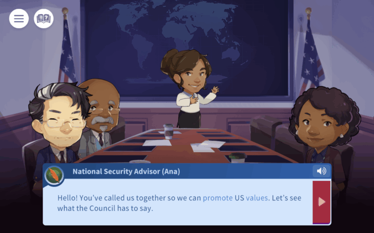 Step inside the White House Situation Room and make the tough choices as conflicts around the world escalate. In Convene the Council, your students will take on the role of president of the United States and discover why foreign policy matters. They will engage with members of the National Security Council to weigh the pros and cons of various policy options and make foreign policy decisions. They will address international crises through strategic action and work to improve core metrics of U.S. prosperity, values, security, and world health. Can your students make the tough choices as conflicts around the world escalate?