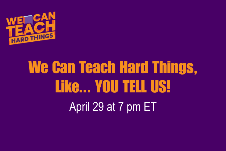 Let us know what topics you’re finding hard to teach, and we will work some of them into our next webinar. Hear from educators from across the country— in red, blue, and purple communities—about how they teach these topics, and walk away with ideas about how to tackle tough topics with your students.