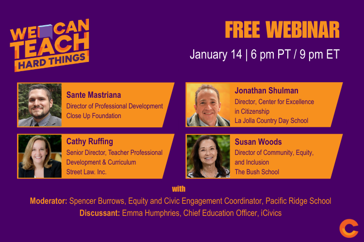 Through this webinar series, the perspectives of teachers across the country contribute to the public conversation about civic education in the United States. Each contributor represents their own opinion. We welcome this plurality of perspectives.